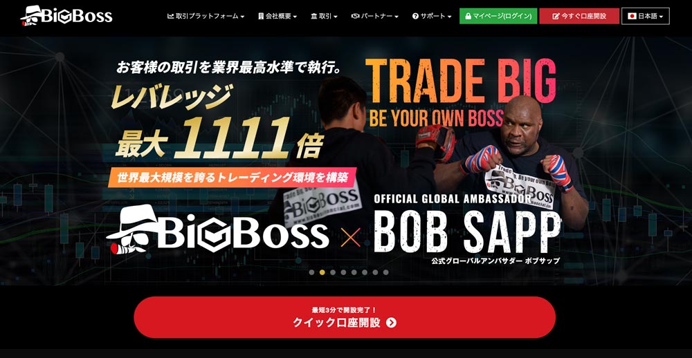 最短3分で開設完了! 新規口座開設はこちら 追加口座の場合はこちら 注意点取引プラットフォーム MetaTrader5口座タイプスタンダード FX口座1111:1&CRYPTOS 追加口座方法 追加口座開設は簡単です。以下のリンクからBIGBOSSを開き右上のマイページ...
