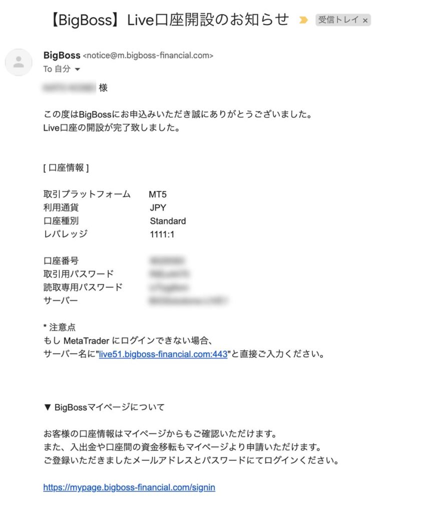 口座開設後メールが届きます!
