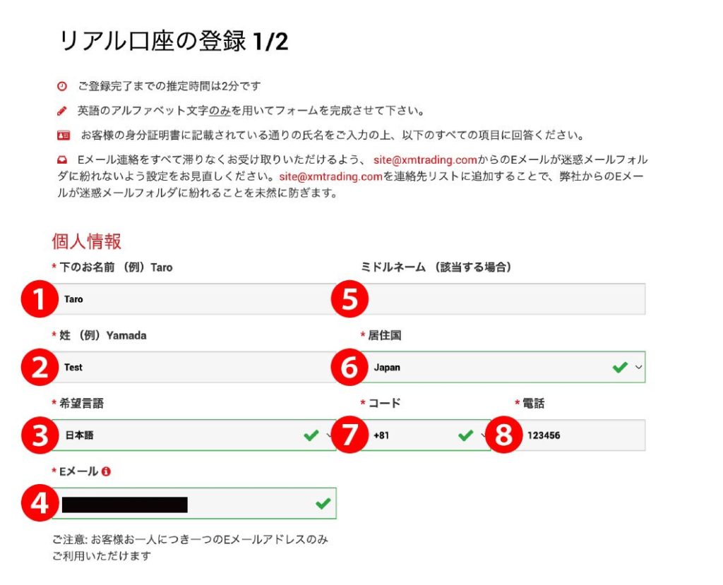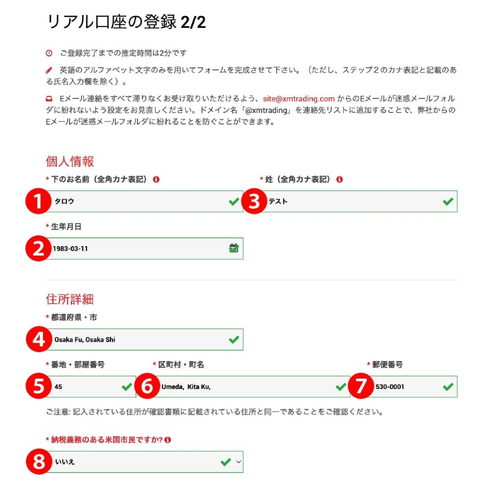 リアル口座開設登録の画面が表示されるので、個人情報の入力です。すべてアルファベット表記での入力となります。