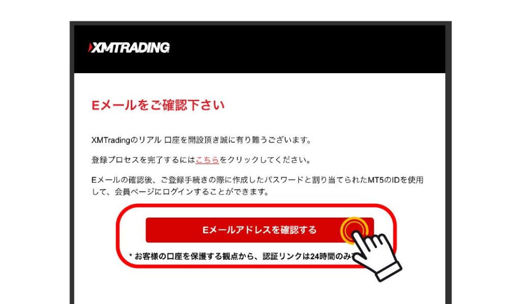 ※注意:認証リンクは24時間以内が有効期限です。認証せずに24時間経過した場合は最初から口座開設のやり直しになります。