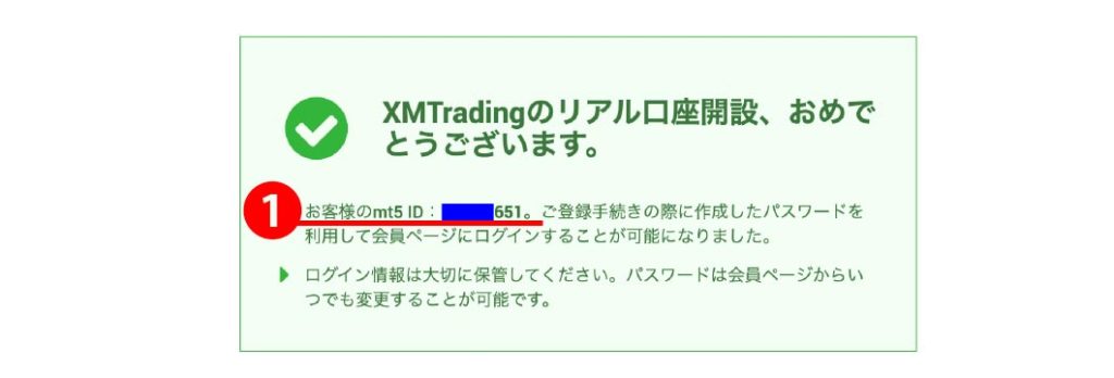 口座のパスワードを決定します。